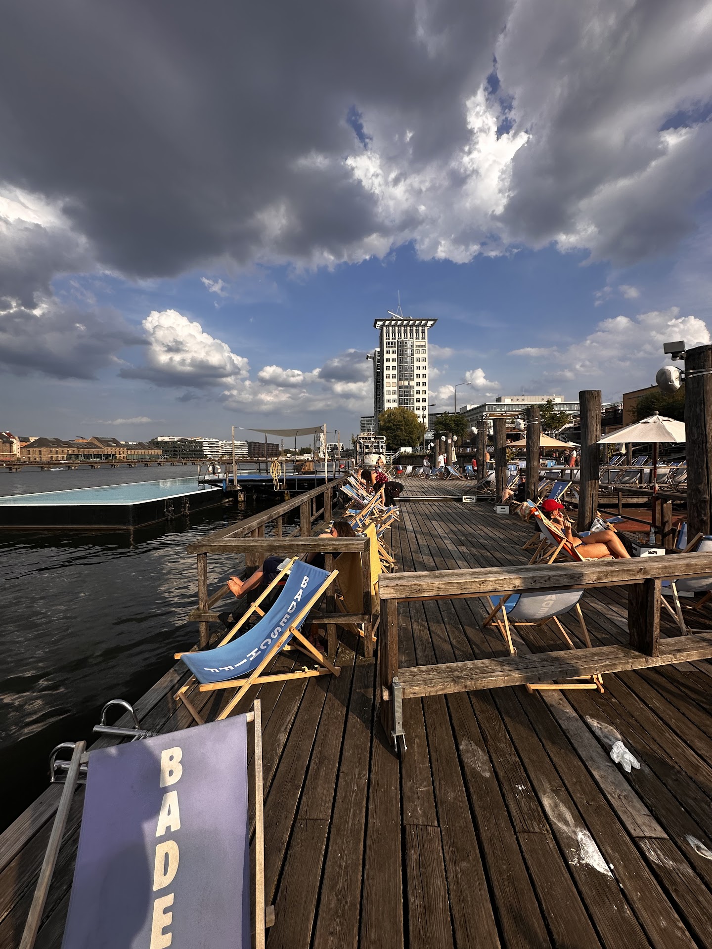 There is a lack of chairs or loungers for you to sit on. Since it is a paid location at least you could provide an equal number of chairs and users.