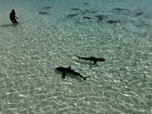 Some brave guests were willing to feed and wrangle the sharks under the supervision of the powerboat crew. Yes, there is a possibility of accidentally swimming near sharks. These are NOT nurse sharks. I personally would recommend not going into the water past your knees if you’re menstruating. Also, definitely do NOT go into the water past your ankles during shark feeding time.