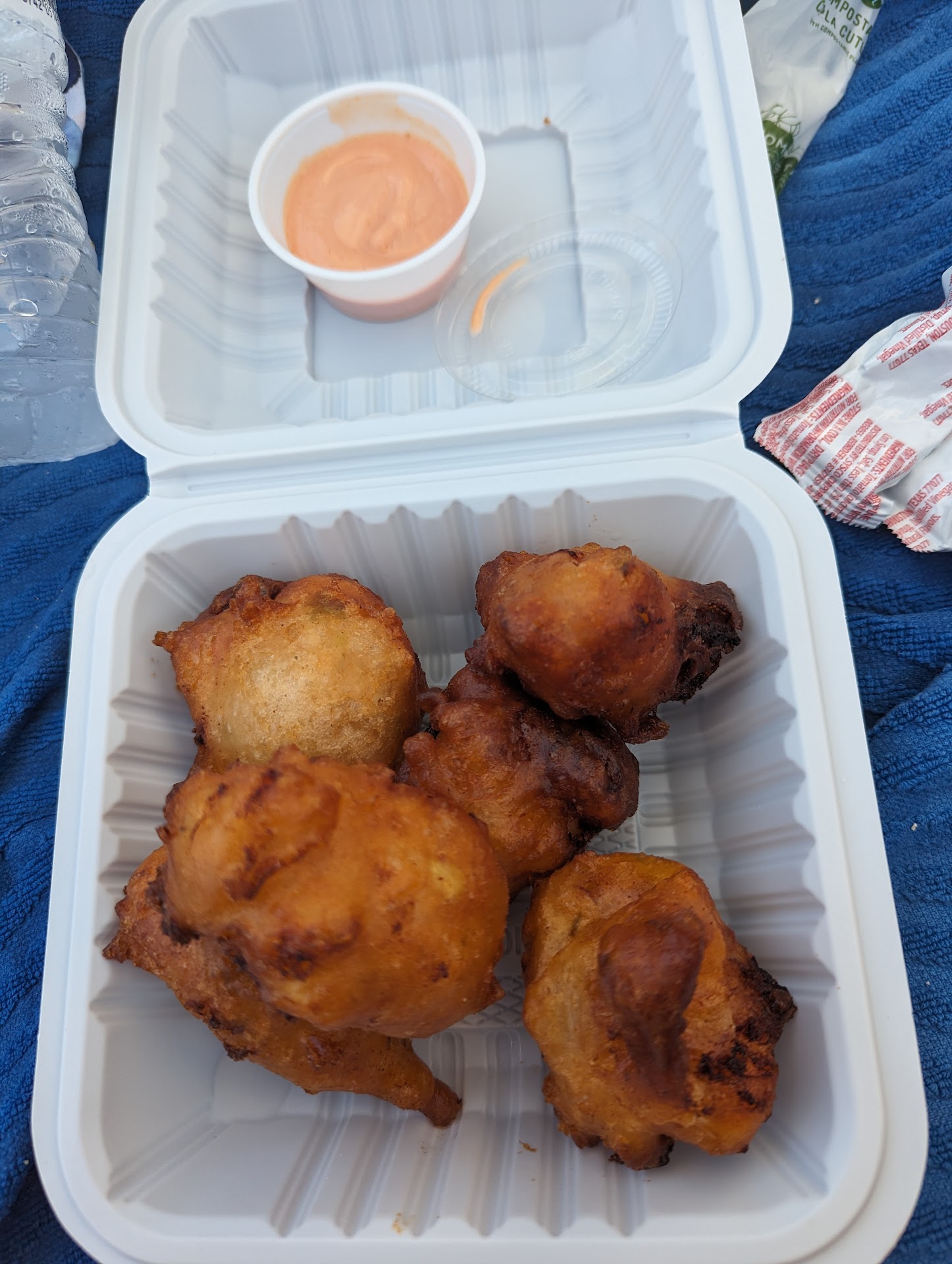We ordered food from one of the food stands and paid about $45 for a beer, one water bottle, fried seafood, and a chicken sandwich with fries. Pay attention to the fine print ok the menu because there are gratuities and taxes that aren't factored into the list price. The food was good enough but it didn't change my life.