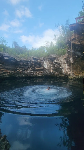 Read moreCrystal clear ocean swimming water in rock hole. Crabs and small fish present on the rocks and in the water. Entrance is a wooden jumping platform, at least 10 feet above the water. Exit is a precarious rope ladder with slippery wooden rungs set far apart (difficult for anyone who is shorter) ending to a rope with knots up to another wooden platform or the prospect of maneuvering yourself to a worn rock ledge to the right of the ropes to climb the rest of the way up, using tree roots as handrails. It will be difficult for all but the most physically capable. Visited on a weekday in the late afternoon, and had the hole to myself. 3 couples in cars visited, but did not get out; might be popular "parking" spot in the evenings. Limited parking on gravel. No restroom or any other facilities available. Recommend to bring along own water to drink, bug spray, waterproof camera, swim shoes with good traction, and a personal...