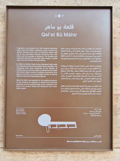 The museum is the first starting point of Pearling Path - UNESCO world heritage site, located at Qal’at Bu Mahir, which is also shown on a Portuguese map of 1635. Originally a solid, four-towered fort with massive defensive walls, Qal’at Bu Mahir dominated the Bu Mahir Seashore and played an essential role in the pearling economy. It both defended the nearby Muharraq settlement and protected the basin between Muharraq and the main island of Bahrain. The latter role was vital for the protection of the pearling fleet against pirates and other Arabian Gulf aggressors at the beginning and the end of each diving season. In addition, the fortress protected Muharraq town’s principal water supply, a sweet water source located in the sea.