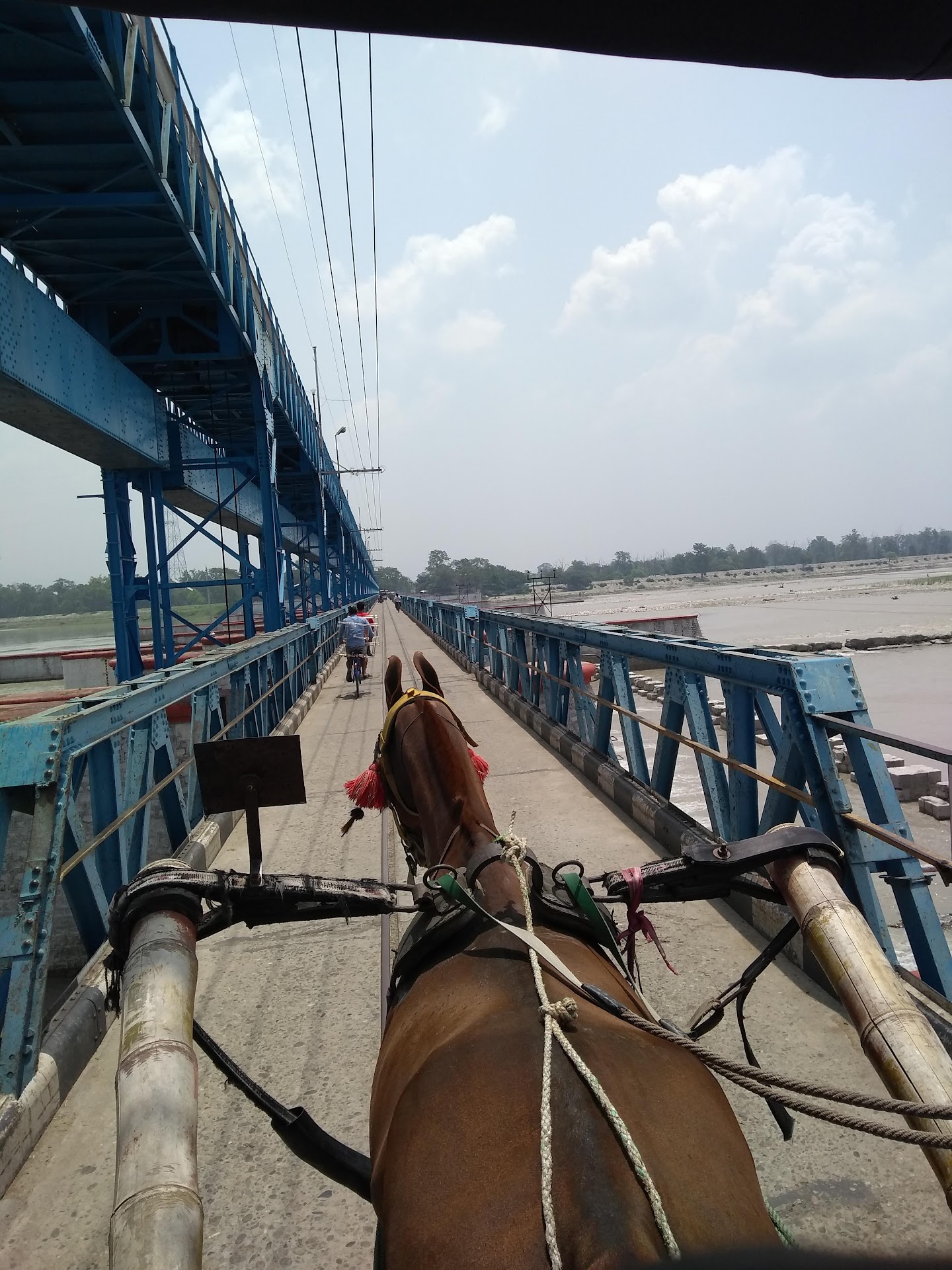 A delight to cross the border on a tonga - a house pulled cart. Who would imagine crossing the border passing through the bridge on the dam into Nepal on a tonga. There are options to avail motorbike rides to cross the border but nothing to beat the tonga. A less used route to enter Nepal from India, it is a fascinating route nevertheless with plenty of nature's gift to greet your eyes. If traveling on your own vehicle it is a great route to explore the nearby national parks and esp to hit the long road across Nepal starting from birendra nagar. I would recommend this route to the more famous entry points through Uttar Pradesh.