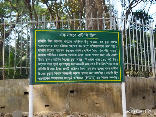 Batali Hill is the tallest hill of Chattogram City. It is also known as 'Zilapir Pahar'. Nice place indeed. Bay of Bengal and the most part of Chattogram city can clearly be seen from the top of Batali Hill. It occupies an area of 43.50 acres. The height of Batali Hill is 180 feet. It is a perfect observation point of Chattogram City. Once a lighthouse was here. During WWII aeroplane destroyer cannon was set up here. Batali Hill is a government property. There are 50 species of trees. About 14,000 trees are here. This place is very close to mother nature. Fresh air can be enjoyed here. Batali Hill is a 2-3 minutes walk from Tiger Pass intersection. Everybody travelling Chattogram...
