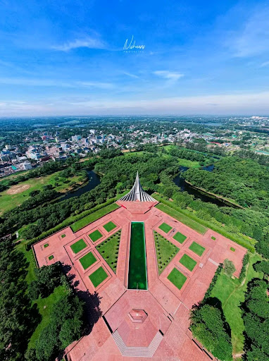 On March 26, 1971, the independence war of Bangladesh began. It ended with victory on 16th December of the same year. About three million people lost their lives in this war. This memorial is dedicated to the valiant struggle of the people of Bangladesh and stands as a shining symbol of the nation's respect for the martyrs of the liberation war. The monument and its grounds cover an area of 34 hectares (84 acres). Apart from this, it is surrounded by another 10 hectares (24 acres) of tree-lined green belt. This memorial commemorates the victory and success of all patriotic citizens and freedom fighters. The seven triangular minarets flow through the country symbolizing each of the seven stages of Bangladesh's liberation struggle. The first of these seven stages was initiated by the Bayanar Bhashya movement. Later on, progressing through mass uprisings of fifty-four, fifty-six, sixty-two, sixty-six and seventy-nine, the final victory of the freedom struggle was achieved through the liberation war of seventy-one. The minaret is 45 meters (150.00 ft) high and is located at a prominent point in the National Martyrs' Memorial compound. The minaret is surrounded by artificial lakes and gardens. There are ten mass graves of unknown martyrs who sacrificed their lives for the motherland in the memorial grounds. The memorial premises also have an open stage, reception hall, mosque, helipad, cafeteria.
