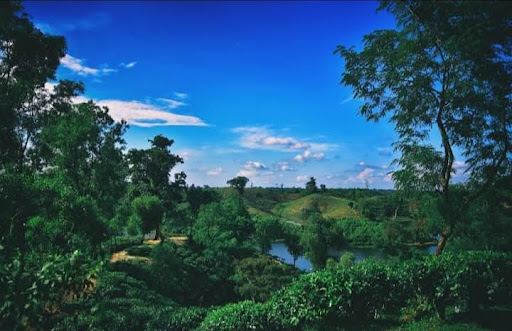 Madhabpur Lake, nestled amidst towering hills on all sides, is truly breathtaking. It is located about 40 kilometers south of Moulvibazar town and 10 kilometers east of Sreemangal. The shimmering waters of the lake, the serene and shaded environment, and the presence of water lilies and lotus flowers enhance its enchanting beauty. As you move forward, the more you explore, the more delightful it becomes. Upon arriving at Madhabpur Lake, the scent of green leaves immediately lifts your spirits. Surrounded by lush green hills and high ridges, the even rows of tea plants in the flat tea gardens create a magical, nature-painted landscape. The blue sky and deep green hills, along with the scenic beauty of the tea gardens, resemble a painting by a master artist, drawing you into another world.