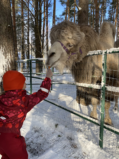 Чудесное место! Показалось, что зверушек там любят и о них заботятся!♥️ Просторные вольеры, разнообразная пища в достатке. Брали с собой яблоки и морковку. Можно и другие овощи, печенье для угощения зверух. Верблюд просто бомба! Ну такой няшка лохматый! Так нееежно берет вкусняшки из рук🥰 ненавязчиво так эта громадина идет за тобой, пока возможность вольера позволяет, клянча вкусняшку)) Милый, скромный черный як, яблочко кушал с удовольствием, а вот от морковки на отрез отказывался Парочка милейших альпак. Рыжая задира все щемит черную, ругается на нее и прикусывает. Не менее наглые ламы)) друг перед дружкой скачут, вырывают вкусняшки друг у друга Милейшая лошадка (или пони) ухожанная, красивая, черная, длиннющая грива, сытенькая такая)) за вкусняшку в благодарность бьет копытом, ну, или просит вкусность таким образом - не очень разобрались)) Милейшая семейка поросят, овечки и баран, гуси, нутрии, ослики, фазаны, козы - эти все все зверушки в...