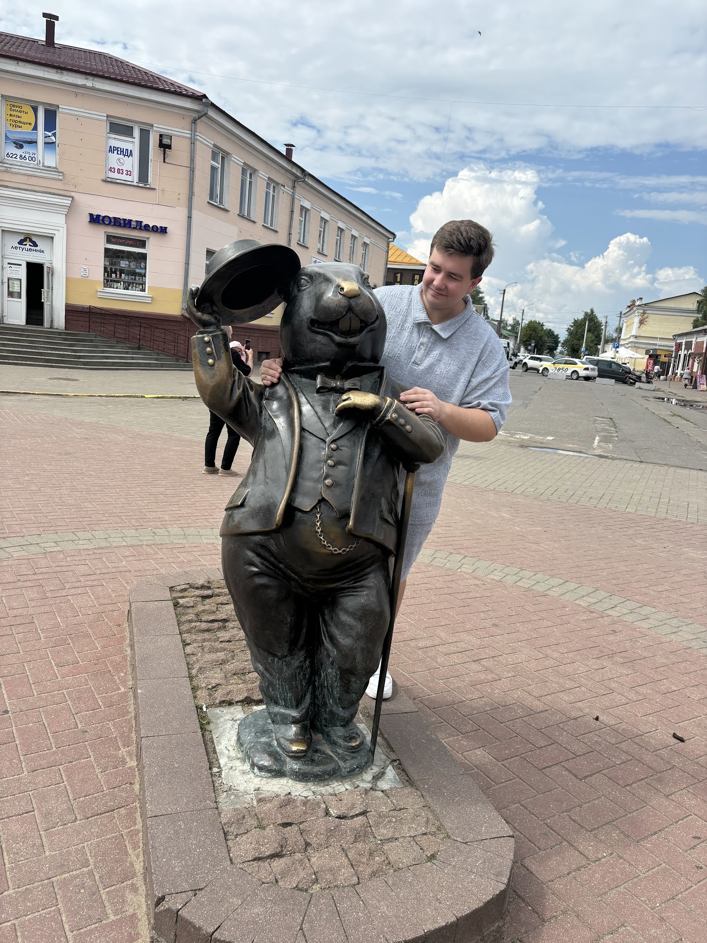 Read moreВизитная карточка города Бобруйска это бобер. Расположен перед входом на колхозный рынок на пересечении улиц Карла Маркса и Социалистической. Перечитывая Ильфа и Петрова, натыкаешься на такие строчки: "- Как? Всю возвышенность? - заявил Балаганов. - А не дать ли тебе еще Мелитополь в придачу? Или Бобруйск? При слове "Бобруйск" собрание болезненно застонало. Все соглашались ехать в Бобруйск хоть сейчас. Бобруйск считался прекрасным, высококультурным местом" коим и остается по сей день. Существует поверие, что на удачу надо потереть цепочку, тянущуюся от часов на брошке Бобра. Будете проезжать Бобруйск, не...
