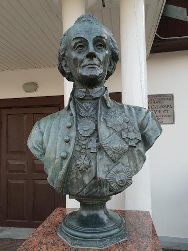 Перед зданием музея в 1950 г. к 150-летию со дня смерти А. В. Суворова установлен бронзовый бюст полководца (скульптор Кюферле), по обе стороны крыльца — 2 орудия, отлитые в 1812 г.