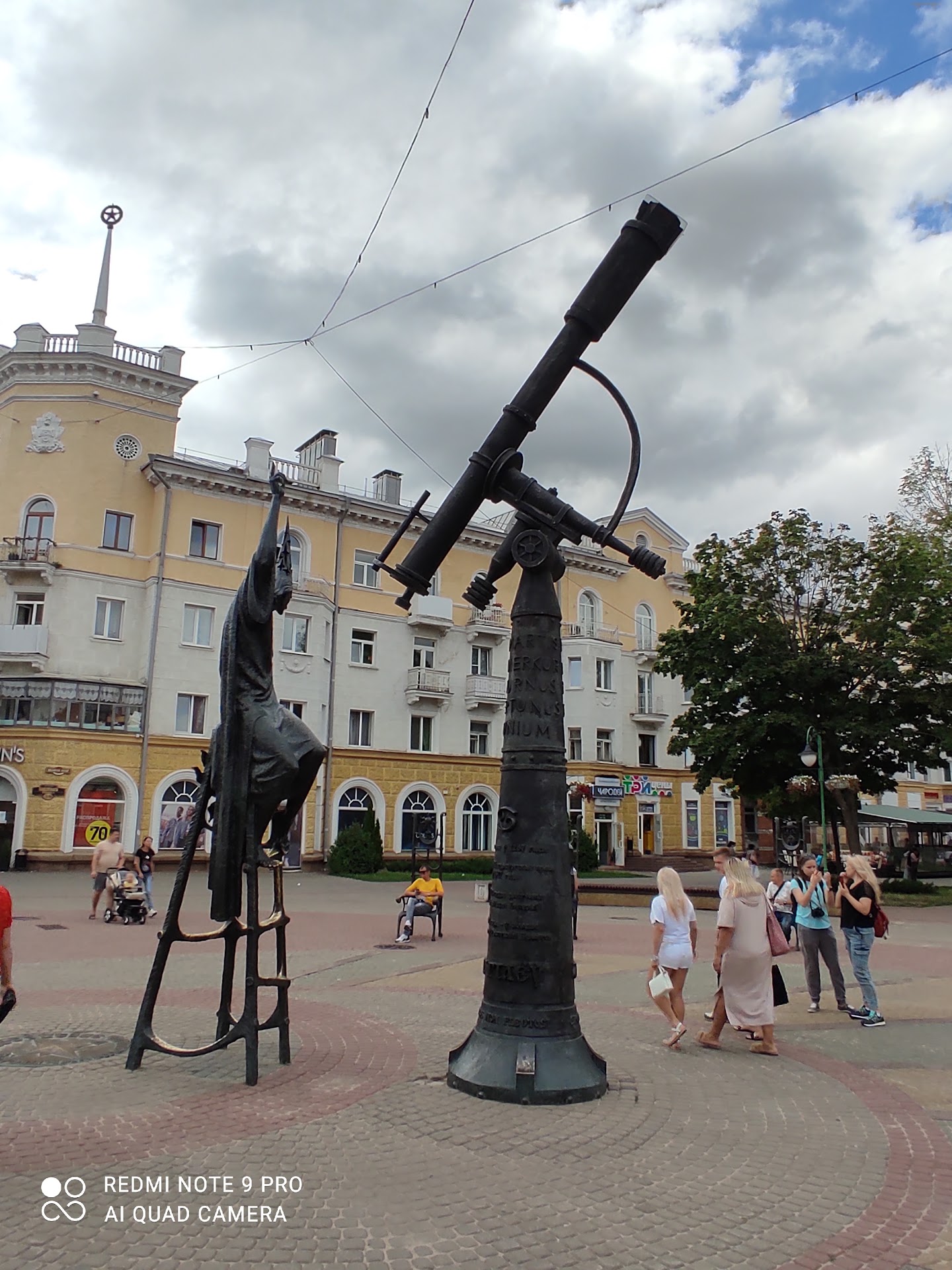 Read moreThere is wonderful place in Mogilev with the name as Square of Stars. Ithe the middle of it there is the sculpture to an Astrologer. There is also one of the biggest and the most original sundial. The Astrologer, pointing to the sky, is sitting in a high chair, ready to observe the sky through a telescope. Around Astrologer there are 12 seats by the number of signs of the zodiac. At night a spotlight turns on the telescope which is visible from space and is able to show the aliens from distant planets most beautiful area of the city of Mogilev. ( В Могилеве есть замечательное место с названием «Площадь звезд». Посреди этого находится скульптура Астрологу. Существует также один из самых больших и оригинальных солнечных часов. Астролог, указывая на небо, сидит на высоком стуле, готовый наблюдать небо через телескоп. Вокруг Астролога есть 12 мест по количеству знаков зодиака. Ночью на прожектор включается телескоп, который виден из космоса и способный показать пришельцам с далеких планет самый красивый район...