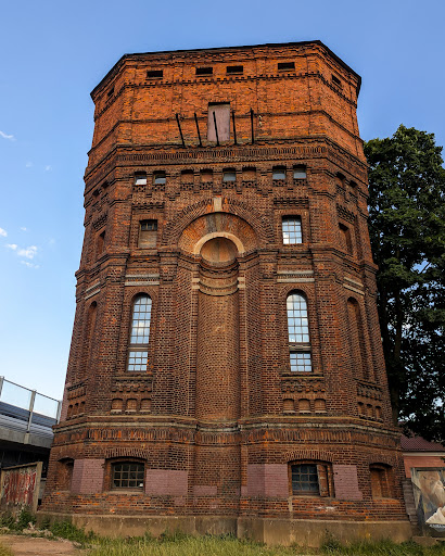 Очень выделяющееся строение на фоне современных, красный кирпич подчеркивает мощь и контраст сооружения. У башни большая история, начавшаяся в начале 20 века, на сегодняшний день ей более 1 века!!! История водонапорной башни связана с железнодорожной больницей. Архитектура поражает своей изящностью! Строгость и изысканность, тяжёлые и немного грозные тона. Вблизи Вы сможе почувствовать эту энергию.