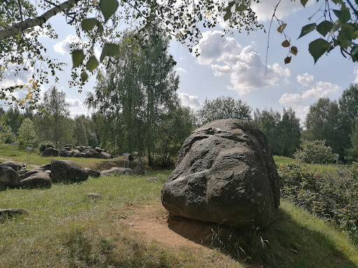 Read moreНа самом деле очень интересное место в городе Минск. Честно. Даже неожиданно. Очень много камней, валунов. Есть такие, которые обрабатывали старинными инструментами, например когда кололи клиньями. Но, есть несколько ЭКЗЕМПЛЯРОВ которые явно были привезены с каких-то мистических мест. Тем посетителям, кто хоть как то способны чувствовать тонкие энергии -- особенно рекомендую. Прогуливаясь, вы сами, как по наитию, придете к этим камням. Но, скажу пока только про два из них. 1-й валун ,он есть на фото со мной, имеет не очень четкое Изображение Иисуса Христа. По крайней мере мне так показалось. И от этого камня веет теплом, которое чувствуется с хорошего, в 1-1,5 м, расстояния. В ветренную погоду рядом с ним на удивление даже не заметно, что ветер присутствует. Хотя, он один, не в композиции. Расположился под молодой берёзкой. 2-й валун находится ближе к ДС. Вот этот находится в компании 4-5 валунов. И вот тут будьте осторожны. Энергию вы почувствуете. Прямо даже вибрацию воздуха, или легкое гудение в ушах. Как мне показалось, этот валун "вампирит" энергетику. Если в первом случае, я нежился в излучаемой камнем энергии, и на ощупь он был тёплый, то здесь все с точностью до наоборот. От самого валуна не исходит тепла, и он очень холодный. Но в руки били непонятные потоки, возможно обратные, так как через 15 минут пропало хорошее настроение, и до конца дня я был вымотан и разбит так, словно всю неделю работал без отдыха 24/7. Но в целом -- очень красиво. И очень отдыхательно. Посещаете и Коментируйте кому помог...