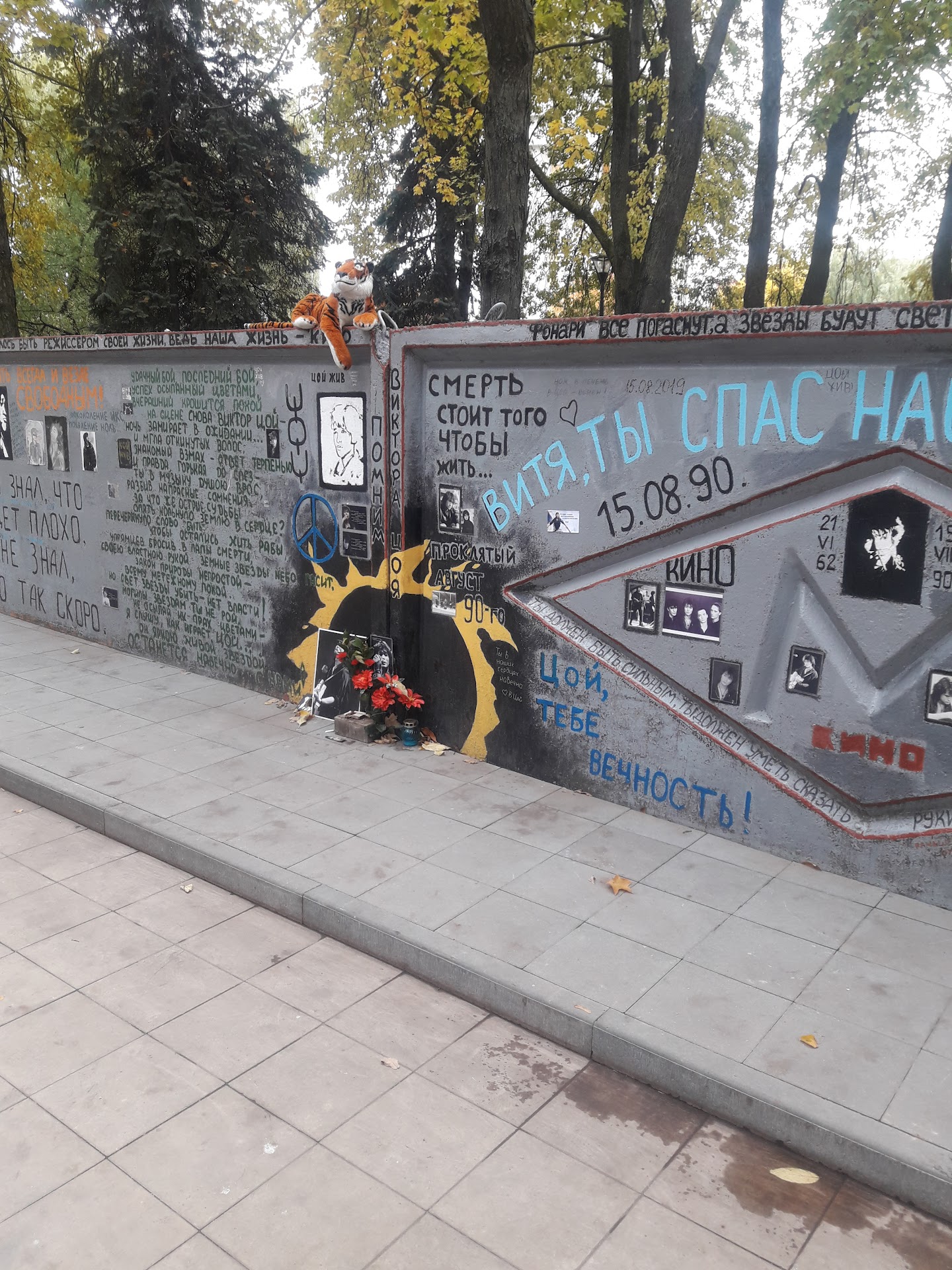 The Tsoi Wall is a graffiti-covered wall in Moscow, dedicated to musician Viktor Tsoi and his band Kino. The wall is located at the house №37, at the intersection of Arbat Street and Krivoarbatsky Lane and is considered one of Moscow's landmarks.