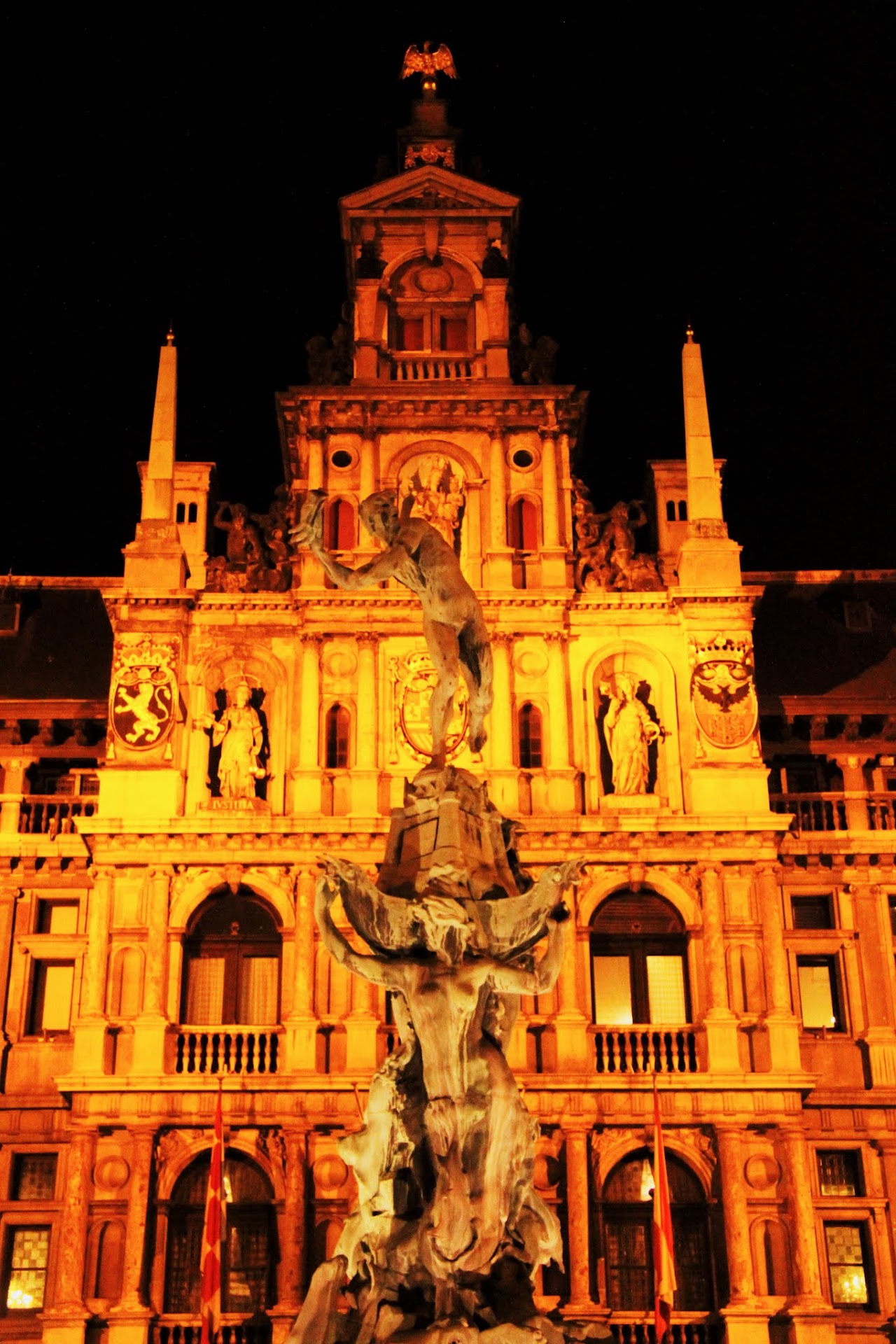 This legend explains how Antwerp got its name. The two Dutch words “hand” and “werpen”, which mean hand and throwing, were concatenated into “Antwerpen.” Either way, with no giants around, except for the local basketball team, our mayor is at ease.