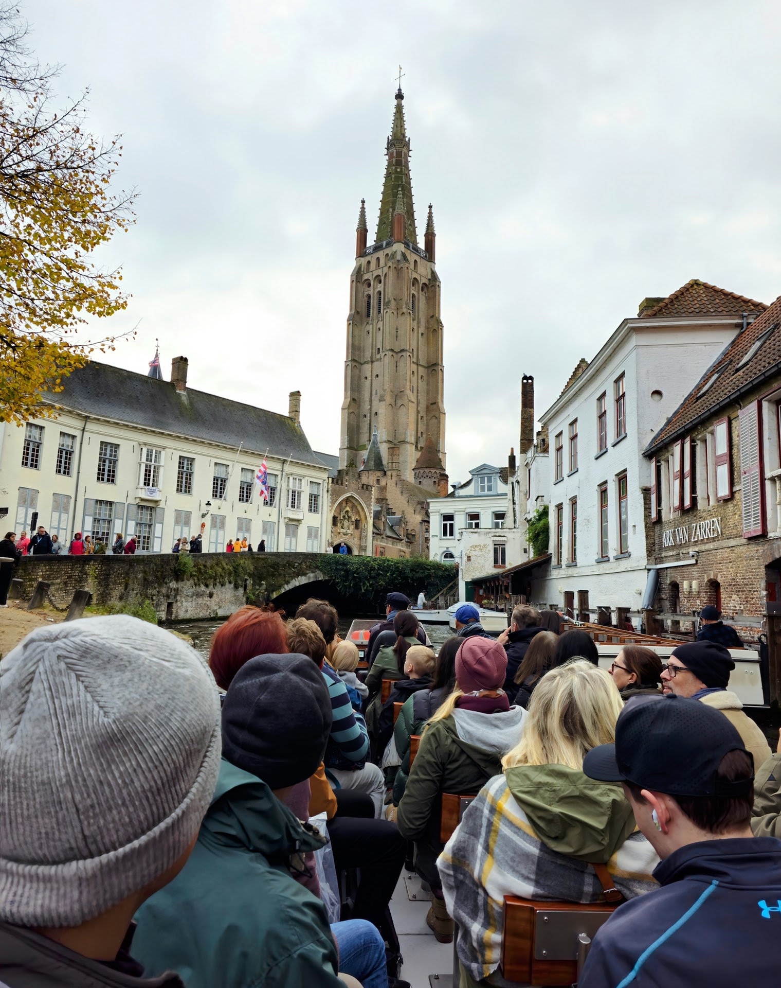 The Church of Our Lady (Dutch: Onze-Lieve-Vrouwekerk) is a Roman Catholic church in Bruges, Belgium, dating mainly from the 13th, 14th and 15th centuries. Its 115.6-metre-high (379 ft) tower remains the tallest structure in the city and the third tallest brickwork tower in the world. The tower can be nicely seen from the canals during a boat tour.