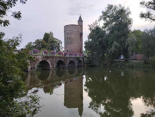 Read moreDer Poertoren ist ein markanter Backsteinturm aus dem 15. Jahrhundert, der am Brügger Minnewater steht und einst als Lager für Schießpulver diente – daher auch sein Name, der sich vom niederländischen „poeder“ (Pulver) ableitet. Errichtet wurde er 1398 als Teil der mittelalterlichen Stadtbefestigung und erfüllte über Jahrhunderte eine strategische Funktion für die Verteidigung Brügges. Mit seinem runden Grundriss, den schmalen Schießscharten und dem spitzen Kegeldach ist der Turm ein eindrucksvolles Beispiel spätmittelalterlicher Wehrarchitektur. Heute ist er nicht öffentlich zugänglich, bietet aber von außen – besonders vom Minnewaterpark oder von der Brücke darüber – ein schönes Fotomotiv. Der Poertoren steht unter Denkmalschutz und gehört zu den weniger bekannten, aber historisch bedeutsamen...