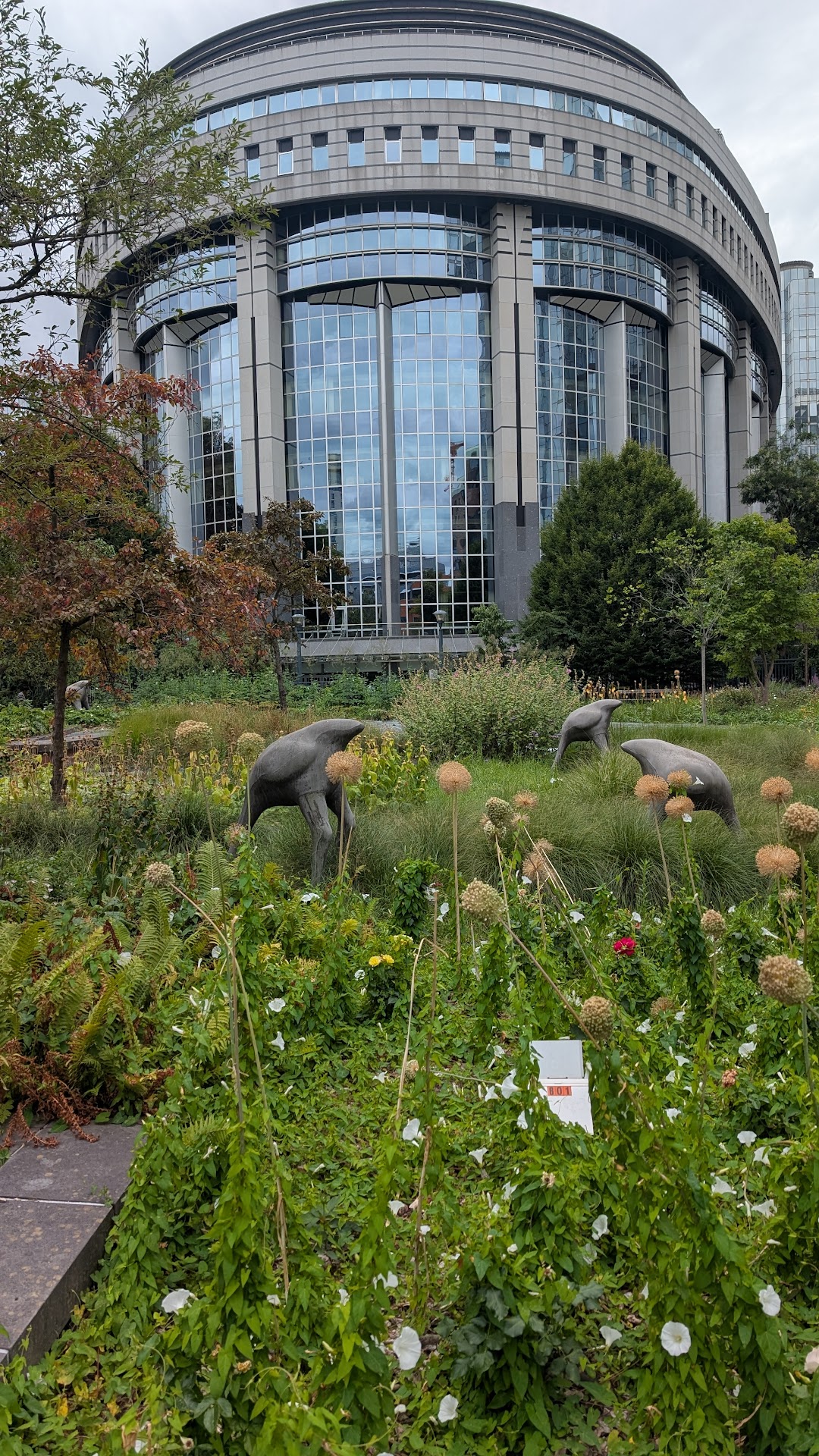 While walking through the aforementioned EU Parliament grounds, we noticed a garden populated with ostrige sculptures leaning forward with their heads buried in the ground.