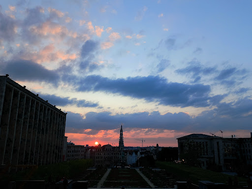 The area is surrounded by major cultural landmarks, including the Royal Library of Belgium, the Magritte Museum, and the Musical Instruments Museum. Art lovers will find plenty to explore. I particularly enjoyed sitting on the steps, soaking in the golden sunset over the Brussels skyline, with the majestic tower of the Town Hall standing tall in the distance.