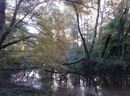 A nice park full of older trees. There is a playground, cafe, walking paths and a dogs-free-running area around. The park has the appearance of an old castle garden. In the park is an old pond with a dilapidated bridge. Too bad because this looks like a nice litle bridge...