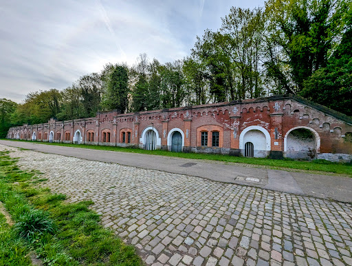 One of the Brialmont forts, Fort 4 was built in 1860-1864 from brick with sandstone decorations. As originally intended, the main front building is largely invisible.