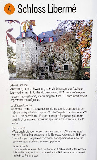 Read moreEine Wasserburg. Laut Volksmund entwickelte sich der Name aus dem lateinischen "libera me" ("Befreie mich"). Die älteste Erwähnung datiert im Jahre 1334 als Lehnsgut des Aachener Marienstifts. Im 16. Jahrhundert umgebaut, 1684 von französischen Truppen niedergebrannt, dann wieder aufgebaut. Im 18. Jahrhundert erneut abgebrannt und aufgebaut. Zu Beginn der 1920er Jahre komplett renoviert. Heute Institut für internationales Steuerrecht. Es werden auch Konzerte...