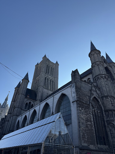 This church is a very iconic part of the city of Ghent and a very important heritage piece of the Ghentians. This church was made by initiative of the Sint Pieters Abbey, a bit in competition with the Sint Baafs Abbey, who built the Sint Baafscathedraal near the Sint Niklaaskerk. Thid church is a good example of Schelde Gothiek. A Gothic style that was used in the areas near rhe Schelde river. This church was partially built for the boatmen of the Schelde and the Leie rivers who, back in the day believed in alot of the superstitions of the sea, like fear of seamonsters etc. So with the building of this Church they had a praying place before going on a sea journey because Saint Nicolas is the patronsaint of the seamen, bakers, merchants, etc. Ghent was also a big economic city of the time with alot of merchants and bussiness going on on the Korenmarkt. Ghent also had a big grain import from the countryside. You could translate 'Korenmarkt' in 'grain market'. Ghent had alot grain warehouses. This church was never finished. parts broke down and were burnt off in the making of this church. The church suffers from instabilities (it is safe to go inside) in the walls and pillars and they are being worked on since a very long time. The inside of the churche is very beautiful where you can see the efforts and attempts to maintain the church next to the beautiful catholic...