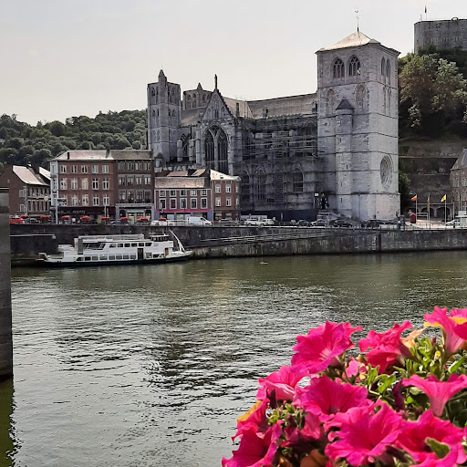 De 1ste steen werd gelegd op 15 maart 1311. Ze is gewijd aan Onze-Lieve -Vrouw en aan de Heilige Dominatius van Hoei ( schutspatroon tegen koorts ) de kerk is vooral bekend voor " Li Rondia " - het roostervenster - één van de wonderen van Hoei ( de stad telt er 4 ) . Ze is 48 m hoog - 6 meter aan de binnenzijde en 9 meter aan de buitenzijde. Achter het altaar zijn de spitsbogige ramen prominent aanwezig - zij ver - wijzen naar de Rozenkrans en de lokale geschiedenis . Het hoofdaltaar heeft een voorstelling van het laatste avond- maal . Er staan 2 dienaren aan de buitenkant van de tafel wat zeer uitzonderlijk is. In een marmeren zijaltaar ( 1886 ) staat het beeld van O.L.V uit de 14de - eeuw. De cenotaaf ( graf zonder lichaam ) werd in 1640 opgericht door Guillame de Royer ( Graaf van Bassignier ) ter nagedachtenis aan zijn jongere broer Hadelin , een tiener die in het klooster stierf in De kerk bevat een schatkamer opgesteld in een Romaanse crypte. Aan de buitenzijde neemt u bij de uitgang het straatje rechts ( Rue des Cloîtres ) een smal straatje geplaveid met grafstenen Dit straatje komt uit op " Bethlehem" ( Rue du Pont ) het is één van de mooiste portalen in Wallonië . Het stamt uit de 14de-eeuw. De scènes vertellen de geschiedenis rond de...
