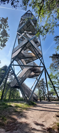 Read moreDe brandtoren van Kalmthout werd ingehuldigd op 1 april 2022 en heeft drie functies: zendmast, brandtoren en toeristisch uitkijkplatform. Van de grond tot het puntje van de antenne is de toren 42 meter hoog. Op de plateaus krijg je een adembenemend 360° panoramisch zicht over de unieke natuur van Grenspark Kalmthoutse Heide. Bij helder weer zie je zelfs de televisiemast in Roosendaal, de haven van Antwerpen en de kerken van de omliggende gemeentes. De toren doet dienst als zendmast (42 meter hoog) voor Astrid, het communicatiesysteem van de hulp- en veiligheidsdiensten in België. De brandtorenwacht houdt vanop de hoogste verdieping (30 meter hoog) de heide in de gaten. In brandgevoelige periodes zijn de vrijwilligers afwisselend van wacht. De toren heeft ook een toeristisch uitkijkplatform (24 meter hoog) om de prachtige natuur van Grenspark Kalmthoutse Heide en haar omgeving vanuit de lucht te zien. Het ontwerp is zowel modern als elegant. De gebruikte materialen zijn gepoedercoat en gegalvaniseerd staal voor het frame, de leuningen, de trappen en de plateaus, en voor de balustrades (helaas) dennenhout waarvan ik vrees dat het op relatief korte termijn zal aangetast worden door de tand des tijds. Helaas is er nabij geen parking voorzien waardoor je verplicht bent een parkeerplaats te zoeken in de omliggende straten. De laatste 500 meter na het verhard wegdek moet je te voet afleggen op een zandweg. Ontwerpers: Nohnik, ABT en Bureau Bouwtechniek. Aannemer: TM IDD-Costermans. Bouwheren:Gemeente Kalmthout,Agentschap voor Natuur en Bos, ASTRID. Bezoek ook zeker de dichtbij gelegen (slechts 3 km verder) Uitkijktoren De Stapper die je een onvergetelijk zicht biedt op het sprookjesachtige...