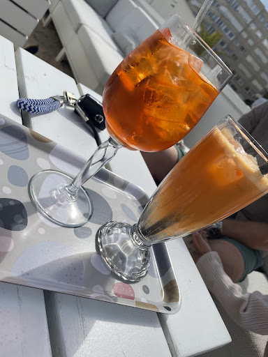 Wat een verschrikkelijke zaak is dit zeg. Ik ben niet zo van reviews schrijven maar dit was echt ronduit asociaal. Eerst betaal je de hoofdprijs voor drankjes en eten dat rechtstreeks bij de Aldi vandaan komt om vervolgens weggestuurd te worden van de zeekant/strand door een meneer die vind dat wij daar niet mogen zitten. "Dit is ons strand, u mag hier niet zitten". "Dan moet u een van de bedjes hierboven huren" Waarop onze vraag was waar dat dan stond. " Nee het mag niet van mijn baas". Is mijnheer of mevrouw de Baas de eigenaar van de zeekant en het strand dan? Het is niet dat we tussen de bedjes inzaten maar gewoon aan de waterkant, onze kinderen spelend in de zee. 5 minuten eerder mochten we wel €65 aftikken voor een dienblad vol rommel. Diezelfde baas vind het blijkbaar wel legaal om 20 euro te vragen voor een paar stukjes fabriekskaas en dito salami. Met een paar droge crackers, olijven en aioli (ook uit een potje uiteraard) geserveerd op een Ikea plankje. Of € 7,00 voor een droge tosti bestaande uit 2 minieme plakjes brood met minimaal beleg. Gastvrijheid van het allerlaagste niveau. Je zou je als horeca ondernemer kapot moeten schamen. Geldklopperij! Het is dat ik hier geen 0 sterren kon geven. GA HIER NIET HEEN!!!