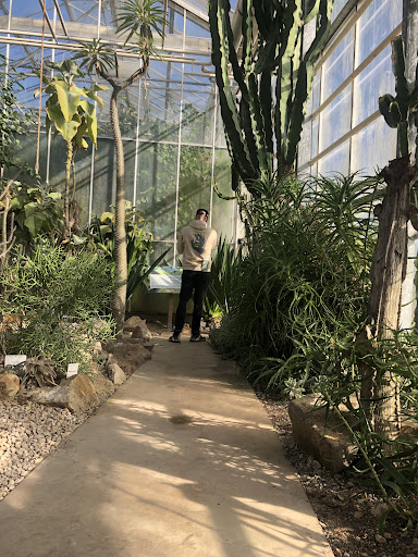 Complexe divisé en 5 grandes serres. La première sert accueil et contient surtout des tables pour manger et des toilettes, ainsi qu'un petit bar à snacks. La visite commence avec la deuxième serre (tempérée) contenant des mousses, hépatiques, fougères conifères et autres plantes intéressantes du pdv évolution vers les plantes modernes, ainsi que des arbres fruitiers d'intérêt économique et des plantes carnivores. La troisième serre a un climat méditerranéen et sert à exhiber des plantes des 4 coins du monde car plusieurs pays possèdent des zones à climat similaire. Plantes de la garigue, de Californie, d'Afrique du Sud, etc. La quatrième serre est tropicale et contient de nombreuses plantes grimpantes et arbres de taille impressionnante. La majorité des animaux présents en terrarium a toutefois été déménagée pour des raisons juridiques. La dernière serre désertique contient de superbes cactus, euphorbes, aloès, crassulacées etc encore une fois de très belles tailles.