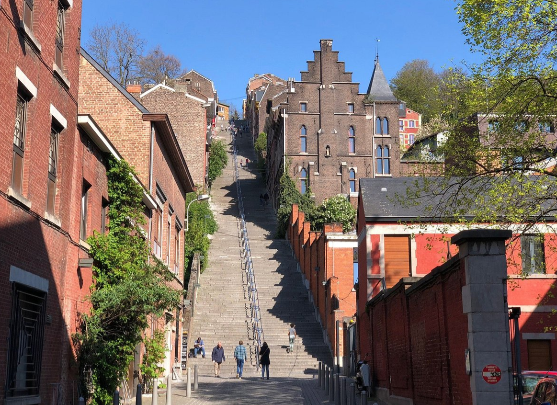 De klim naar boven is zeker een fysieke inspanning. Het is aan te raden om goede schoenen te dragen en eventueel een flesje water mee te nemen, vooral op warmere dagen. Maar elke stap, elke hijg, is het waard. Onderweg kun je even stoppen om op adem te komen en te genieten van de steeds verder wordende uitzichten over de stad Luik. De historische gebouwen langs de trap, met hun charmante gevels en details, voegen een extra dimensie toe aan de ervaring. Het is alsof je door de geschiedenis van de stad omhoog klimt.