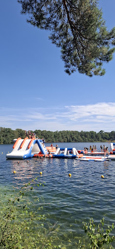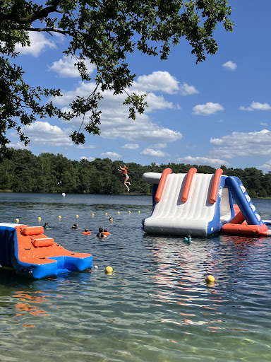Het aquapark zelf biedt heel wat leuke obstakels en springstructuren op het water. Voor zowel kinderen als volwassenen is het een leuke uitdaging, en er is altijd toezicht, wat een gerust gevoel geeft. Alles was schoon en goed onderhouden, en je merkt dat er aandacht wordt besteed aan veiligheid.