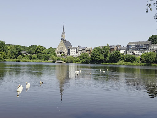 J’ai aussi beaucoup aimé la verdure, où canards et oies se reposent ou broutent paisiblement. Le calme qui y règne est vraiment ressourçant 🌿 On y trouve aussi des panneaux expliquant les différentes espèces de poissons, des appareils de musculation en plein air, des jeux pour enfants, et même quelques infos sur l’histoire des sorcières de Vielsalm 🧙♀️