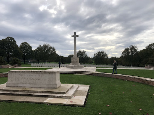 Something about this cemetery moved me greatly, maybe more than Tyne Cot. It is very somber and so quiet except for the odd bit of bird song. If you visit here then go and spend some time on the bench under a small tree on the right hand edge about halfway down. I found it very emotional and moving. What really struck me here was the very high percentage and concentration of headstones with simply the line "A soldier of the great war known unto God". No name, no regiment, no country. It is a small but powerfull reminder of the cost of war. EVERY school child should be bought to Pashendale and shown Tyne Cot, Hooge Crator and the Menin Gate but also one of the German cemeteries and memorials like Langemark and drum into these kids heads that this is the only thing that comes from war! Advice It is more powerful to walk this cemetery by yourself away from your group or family etc. Take your time to wonder where you feel drawn. NOTEI strongly advise you to take a small wooden British Legion cross with you as I guarantee you will feel drawn to and want lay one at a chosen grave. Take a pen and write a message, note, or prayer on the back that will be known only to you. (They do sell them over the road at the restaurant/shop or you can pick one up in Ypres from the RBL shop just down from the Menin Gate if you forget or if you...