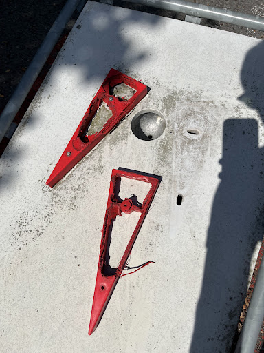 Na een paar holes merkten we echter dat het terrein écht oud en versleten is. ⹠Sommige onderdelen van de banen zijn kapot of gebroken. Het net om in te slaan is bijvoorbeeld helemaal verstijfd, dus dat werkt gewoon niet meer. ⹠Ook de dingen errond zijn niet goed onderhouden. Een picknickbank is kapot, en een lange houten bank zit zo oncomfortabel door het versleten hout dat het letterlijk pijn doet. ⹠De decoratie van de oude kaasfabriek ziet er niet charmant oud uit, maar gewoon versleten en verwaarloosd. ⹠En het ergste: er lag op verschillende plekken gebroken glas, zelfs in een van de holes waar je het balletje moet uithalen. Gelukkig zagen wij het net op tijd voor een van de kleintjes zich kon bezeren.
