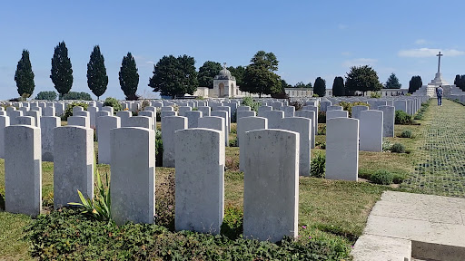 Read moreThe scale of this cemetery is staggering - it isn't just the number of graves but how many are unknown soldiers. I visited for several reasons. First is that my Great Grandfather fought in the 3rd Battle of Ypres and not only did he miraculously survived but so did the diary he kept of his experiences. I know that some of his comrades died and possibly buried here/named on the memorial wall so I wanted to pay my respects. There is also a memorial to the Sherwood Foresters, which several of my family members were part of so wanted to view this too. Finally my Great Uncle Charles, who was a Sherwood Forester, was killed in action locally but has no known grave. My research points to this being one of the two possible last resting places for him. It would take hours to view each grave, and we had limited time here, but I did spot a grave of an unknown Sherwood Forester and I would like to think that perhaps this is Charles and he guided me here. As with all Commonwealth War Cemeteries, this is beautifully maintained and is a fitting memorial to all those laid to rest here. There is a visitors centre along with free parking. Take tissues as you will have tears in your eyes....