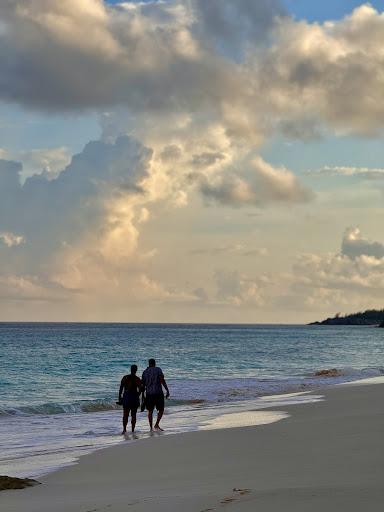 One can access the western end of this beach on foot via Astwood Walk (next to the gas station lot) and a tall set of stone steps cut into the cliff. Depending on beach erosion and the tide, you may be able to access the entire beach -- or just part of it. At the eastern end, it's been co-opted by the Azura complex, but there is no physical barrier, and there is plenty of beach that is not part of Azura. It's extremely quiet -- very few people, if any -- and absolutely beautiful. You can snorkel right offshore as in so many parts of BDA. Surf is typical for South...