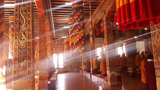 The Kenchosum Lhakhang/temple is an architectural wonder and one of the most beautiful temples in Bhutan being recently renovated after the disastrous fire from a butter lamp in 2010. Located just below the Tamzhing Lhakhang, the stunning Kenchosum Lhakhang is brightly painted with intricate murals and designs and bigger in size as compared to the traditional temples. In the 8th Century, on the advice of Guru Padmasambhava, the Tibetan King Thrisong Duetsen built this temple in the replica of the Samye Monastery of Tibet, the first Buddhist temple built in the world. It is believed that Guru Padmasambhava himself designed and consecrated the temple. Over the years and centuries the temple amassed numerous relics and treasures, most of which were destroyed in the fire of 2010, and the ones that were saved are the prized treasures of the new temple. Apart from the many relics, the most significant ones are the three statues of the Past, Present and Future Buddhas; and a large broken bell that was offered by a mermaid to Guru Rinpoche. It is believed that when the bell is rung the sound can be heard all the way in...