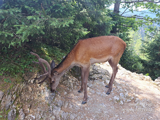 Piękna trasa z ładnymi widokami w stronę Hali Gąsienicowej. Po drodze można spotkać jelonka który przyjaźnie jest nastawiony. Chować tylko jedzenie i bułki bo...