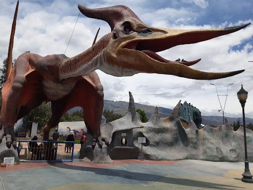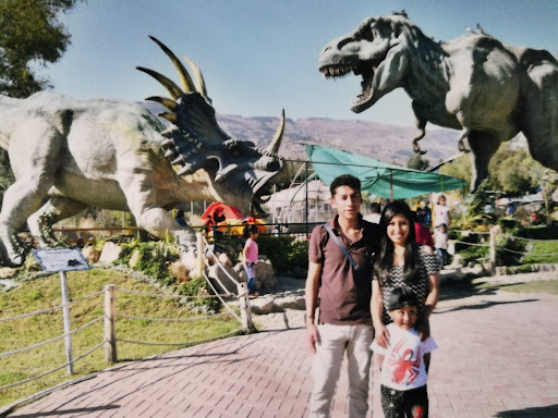 Un Parque muy bonito para ir con toda la familia... Lo interesante es que uno puede interactuar con los dinosaurios, ya que se puede resbalar por el interior de un brontosaurio o los niños pueden subirse a un sube y baja con caritas de dinosaurios, también girar sin parar montados en unos dinosaurios bebes... Existen también parrilleros para alquilar en forma de volcanes y para pasar un dÃa con la familia y comer un delicioso churrasco... En otra área nueva se puede adquirir souvenirs, plantas y hasta peces de acuario... Hay sectores en desarrollo asà que pronto volveré con la familia a ver que más propondrán... Para llegar al parque se puede tomar las lÃneas 212 o 233 que dicen sacaba en sus letreros, esto de la esquina ayacucho y aroma en el centro de...