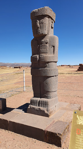 Read moreEl Monolito Fraile es una escultura monumental que se encuentra en el sitio arqueológico de Tiwanaku, Bolivia. Este monolito esculpido en piedra andesita representa a una figura humana de tamaño natural, con una apariencia estilizada y detalles ornamentales característicos de la cultura Tiwanaku.El Monolito Fraile destaca por su posición sentada y la vestimenta distintiva que lleva, que incluye un tocado elaborado y ornamentos faciales. Aunque su significado exacto sigue siendo objeto de interpretación, se cree que esta escultura pudo haber tenido una función ceremonial o religiosa, posiblemente representando a una figura de autoridad espiritual o política dentro de la sociedad Tiwanaku.Este monolito, junto con otros monumentos y estructuras en Tiwanaku, refleja la habilidad artística y técnica de esta antigua civilización andina, así como su profundo sentido de simbolismo y ritualidad. Sígueme en youtube estoy con...