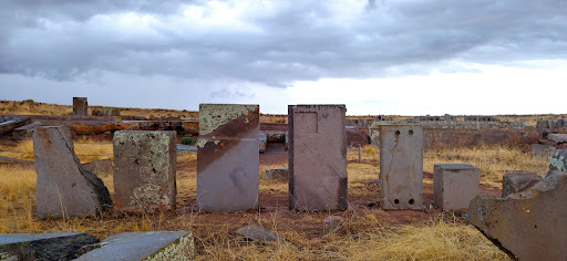 Read morePumapunku ali Puma Punku púmapúnku je del velikega tempeljskega kompleksa ali spomeniške skupine južno od arheološkega najdišča Tivanaku na nadmorski višini 3850 m v zahodni Boliviji. Tivanaku je v inkovski tradiciji pomemben, ker naj bi tu bilo območje, kjer je bil ustvarjen svet. V ajmarščini Puma Punku pomeni »Pumina vrata«. Pumapunkujev kompleks sestavljajo: neobzidano zahodno dvorišče, osrednja neobzidana esplanada, terasasti platformski nasip obložen z velikimi kamnitimi kladami in obzidano vzhodno dvorišče. Pumapunku je terasasti prsteni nasip obložen z megalitskimi kladami. Njegova širina vzdolž severno-južne osi je 167,36 m, dolžina vzdolž vzhodno-zahodne osi pa je 116,7 m. Na severnem in južnem vogalu Pumapunkuja sta 20 m široki izbočini, ki se širita 27,6 m severno in južno od pravokotnega nasipa. Vzhodni rob Pumapunkuja zavzema »Plataforma Lítica«, ki jo sestavlja kamnita terasa z izmerami 6,75 krat 38,72 m. Terasa je tlakovana z več ogromnimi kamnitimi kladami. Vsebuje največjo kamnito ploščo najdeno tako v Pumapunkuju kot v najdišču Tivanaku. Ta kamnita plošča je dolga 7,81 m, široka 5,17 m, njena povprečna debelina pa je 1,07 m. Glede na specifično težo rdečega peščenjaka, iz katerega je ta kamnita plošča izrezana, so njeno maso ocenili na 131 ton. Drugi kamnoseški in oblagalni predmeti v Pumapunkuju vsebujejo mešanico andezita in rdečega peščenjaka. Jedro vsebuje glino. Plast pod nekaterimi deli na robu Pumapunkuja namesto gline vsebuje rečni pesek in prodnik. Izkopavanja v Pumapunkuju so odkrila tri glavna gradbena obdobja z nekaterimi manjšimi popravki in predelavami. Na svojem višku naj bi bil Pumapunku »nepredstavljivo osupljiv«.Okrašen je bil z zglajenimi kovinskimi ploščami, svetloobarvanim keramičnim in tkaninskim okrasjem. Po njem so se sprehajali meščani v lepih oblačilih, dovršeno oblečeni duhovniki in izbranci okrašeni z eksotičnim nakitom. Naše trenutno razumevanje tega kompleksa je omejeno zaradi njegove starosti, pomanjkanja pisnih virov, trenutnega slabega stanja struktur zaradi lova na zaklade, ropanja, izrabe kamna v gradbene namene in železniškega gramoza, ter naravnega preperevanja. Območje znotraj enega kilometra, ki ločuje kompleksa v Pumapunkuju in Kalasasaji, so pregledali z georadarjem, magnetometrično, inducirano električno prevodnostjo in magnetno susceptibilnostjo. Geofizikalni podatki zbrani iz teh pregledov in izkopavanj so razkrili prisotnost več struktur, ki jih je izdelal človek. Med njimi so: zidni temelji zgradb in poslopij, vodni kanali, oblike podobne bazenom, zaščitni zidovi, terase, stanovanjska poslopja in razprostrani prodni tlakovi, ki sedaj vsi ležijo zakopani in skriti pod sedanjim talnim površjem. Določevanje starosti kompleksa Pumapunku je bila ena glavnih tem raziskovalcev od odkritja najdišča Tivanaku. Kot je poudaril Isbell, strokovnjak za Ande in profesor antropologije na Univerzi v Binghamtonu, je datiranje z radioaktivnim ogljikom izvedel Vranich iz organskega materiala iz najnižje in najstarejše plasti nasipne oblike Pumapunkuja. Ta plast se je naložila med prvim gradbenim obdobjem, tako da začetna gradnja Pumapunkuja seže v čas med letoma 536 in 600 (1510 ± 25 BP C14, kalibrirani datum). Ker datum določen na ta način izhaja iz te plasti, ki leži pod andezitnimi in peščenimi strukturami, so te strukture nastale po tem času. Vranichevi izkopni jarki kažejo, da glinasta, peščena in prodna plast leži neposredno na neplodnih srednje pleistocenskih usedlinah. Ti izkopni jarki so tudi pokazali odsotnost kakšnih zgodnje predandovskih kulturnih najdišč znotraj območja najdišča Tivanaku v bližini kompleksa Pumapunku. In... you tube...