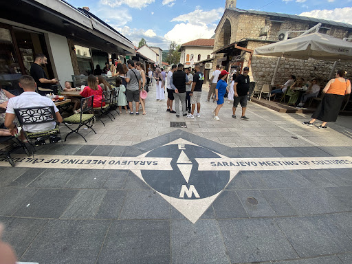 “Sarajevo Meeting of Cultures” is the message of an inlaid marker on Ferhadija St., near Gazi Husrev Bey’s Bezistan. This is the spot where two dominant cultures that once shaped Sarajevo merge.