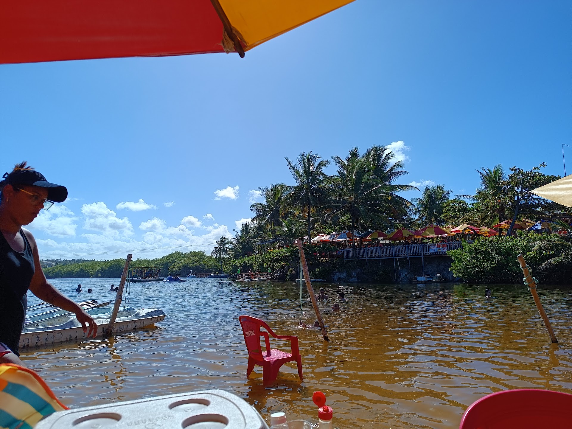 Lugar lindo, perfeição da criação. O rio ao lado do mar é algo impressionante. O mar no local não é calmo para banho, mas o rio tem água com temperatura agradável. O local tem alguns quiosques, serviço em si é demorado pois tem que atravessar o rio para entregar os pedidos, tenha paciência. As jangadas ficam atravessando a todo momento. Tem algumas atividades pagas como tirolesa e passeio aéreo.