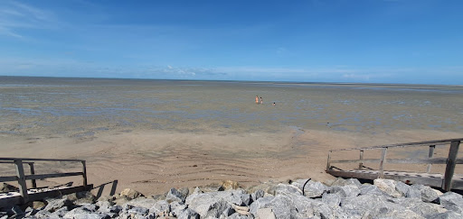 Read moreÓtima experiência. A praia permite visualizar uma variação de maré muito acentuada, o que é único nas praias do Ceará. Chegamos por volta das 14:15, quando a maré já estava subindo, mas ainda longe da costa, e saímos pelas 16:15 com a maré já alcançando as pedras, como se vê nas fotos. Recomendo ir quando a maré está baixa e ficar até ela subir, pois o mar é muito calmo e perfeito para o banho, principalmente com crianças. É possível conferir esses horários pesquisando por "Tábua das marés Acaraú...