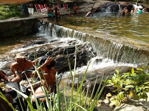 Lugar maravilhoso. Os proprietários só precisam se.ligar q quem vai ali quer ouvir os sons da natureza, da cahoeira e não som eletrônico em um volume q impede.ate vc de conversar....tem q está gritando pra pessoa do seu lado lhe ouvir...infelizmente. Ah! Cheiro de fumaça insuportável, poderia mkdar a churrasqueira pra ficar contra o vento..vc tomando banho ou sentado e a fumaça em sua cara qdo acendem. Uma pena.....lugar ótimo pras crianças e curar uma ressaca.... água muito gelada na cachoeira....mas muito...