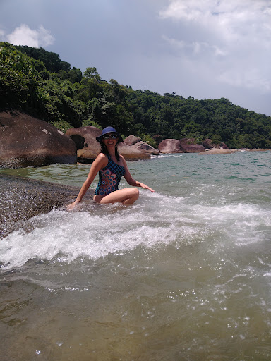 No canto direito da praia, atrás de umas rochas, tem um lugar para subir pelas raízes das árvores e que vai chegar no topo de uma rocha gigante com uma vista deslumbrante, vale a...
