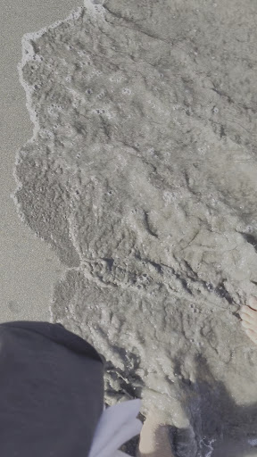 A praia estava com muita matéria vegetal (galhos, folhas) espalhados pela areia, provavelmente por conta de ser cercada por dois rios, sendo um deles bem grande. Mas, além da matéria vegetal, também encontramos bastante lixo misturado no meio.