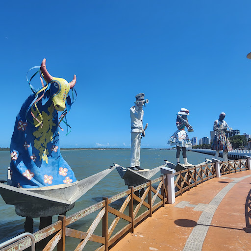 Lambe Sujo e Caboclinhos – Festa que remonta as lutas pela liberdade de escravos em Sergipe; Chegança – Representação da luta entre cristãos e mouros; Cacumbi – Dança ligada ao surgimento dos cordões no Carnaval; Taieira – Dança folclórica de origem africana; Bacamarteiro – Atirador que usa pólvora seca na arma conhecida como Bacamarte; Reisado – Folguedo do Ciclo Natalino, de influência portuguesa; São Gonçalo e Parafuso – Com origem na cidade de Lagarto, Parafuso remete aos escravos em fuga, que usavam as anáguas das sinhás. Se apresentam aos pulos, em movimentos circulares. É um ótimo lugar para fotografar e guardar lembranças de uma Aracaju que vai muito além das praias. Além das esculturas, o local é uma espécie de píer, que avança sobre o rio, com vista para a...