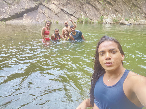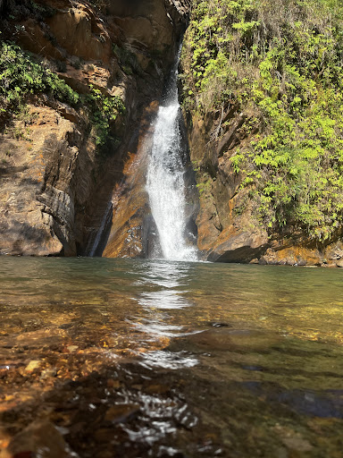 Sobre a cachoeira: A cachoeira é simplesmente lindaa 🤩 tem uma parte rasa e uma mais funda, tem que ter cuidado. Tem uma corrente perto da queda d’água que é meio perigosa, aconselho a ir somente quem sabe nadar e no canto das pedras tomar bastante cuidado pois lá é muito fundo e “parece uma caverna” levando pra trás das pedras, o que pode causar um afogamento.