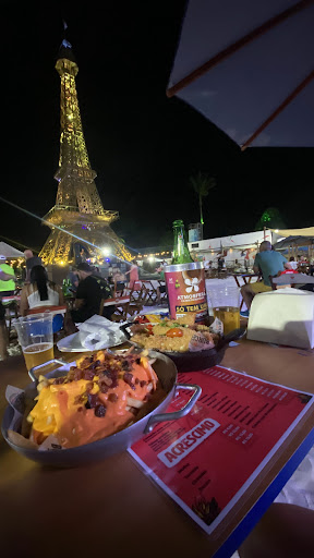 Visita 29/07/23 . O lugar é sim é bacana, no lugar funciona um bar junto da torre, no dia que fui não tinha opção de visitação, só a opção de tirar fotos no local se fosse no bar. O Local das mesas fica ao ar livre, mesas simples e com brasas em tambores pra esquentar pois estava frio, chegamos às 19:50 e precisamos aguardar uns 12 minutos, depois a fila aumentou consideravelmente e tempo de espera passou a ser de uns 30 minutos. O Local tinha uma pessoa tocando saxofone 🎷debaixo da torre e diga de passagem toca muito bem. O piso do local era de concreto mesmo, pintado de verde, bem simples, a porção muito saborosa, preço bom (foto do cardápio, pra alguns pode considerar caro) , mas a quantidade de batata e carne veio pouco comparado a outros lugares.